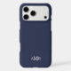 Classic design features personalized 3 letter initial monogram in white classic serif font style on navy blue background.