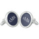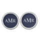Classic design features personalized 3 letter initial monogram in white classic serif font style on navy blue background.