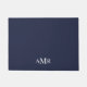 Classic design features personalized 3 letter initial monogram in white classic serif font style on navy blue background.