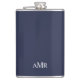 Classic design features personalized 3 letter initial monogram in white classic serif font style on navy blue background.