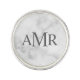 Classic design features personalized 3 letter initial monogram in grey classic serif font style on white marble background.