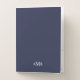 Classic design features personalized 3 letter initial monogram in white classic serif font style on navy blue background.