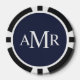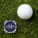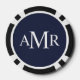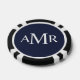 Classic design features personalized 3 letter initial monogram in white classic serif font style on navy blue background.