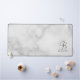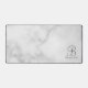 features personalized monogram in grey classic script font style and name in grey classic serif font style on white marble background.