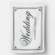 Wedding flag with bride and groom names. Classic script and block text in black on a white background and with a decorative double lined border.