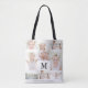 Classic Photo Collage with Monogram and Name Personalized Family Picture Grid Custom Tote Bag.