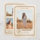 A classic, simple announcement or invitation to celebrate your Graduate and showcase your photos. Room for one main photo on the front side and 3 photos plus some text on the back side, on a beige marble-loooking background with a mocha color line frame.