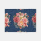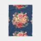 Classic Pink Roses Floral on a Blue Background Fleece Blanket