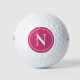 Pretty pink and white bring a fresh, feminine touch to these personalized monogram initial golf balls. A clean circle frames a bold serif letter for a classic, polished look. All text is fully editable to feature any initial. A fun and stylish golf accessory and a great personalized gift for women golfers, ladies' leagues, and golf tournaments.