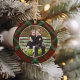 Classic Plaid Double-Sided Photo Christmas Ceramic Ornament
