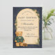 A charming preppy baby shower design featuring a sweet teddy bear dressed in a classic green plaid jacket and bow tie. Above the bear, a delicate clothesline displays tiny baby clothes and shoes, creating a nostalgic storybook nursery scene. The deep navy background and subtle tartan border add a refined, vintage-inspired touch that feels both elegant and playful. Perfect for a stylish baby shower celebration with a classic preppy aesthetic.