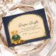 A charming preppy baby shower design featuring a sweet teddy bear dressed in a classic green plaid jacket and bow tie. Above the bear, a delicate clothesline displays tiny baby clothes and shoes, creating a nostalgic storybook nursery scene. The deep navy background and subtle tartan border add a refined, vintage-inspired touch that feels both elegant and playful. Perfect for a stylish baby shower celebration with a classic preppy aesthetic.