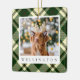 Give your furry friend a special place on the tree this Christmas with our classic plaid pet photo ornament. Design features your favorite dog or cat photo with your pet's name beneath, on a festive green, red and ivory holiday plaid background.