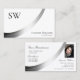 Very elegant plain white business card design with noble shimmery silver decoration.