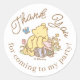 Express your gratitude with these charming Winnie-the-Pooh party stickers. Featuring a timeless illustration of Pooh and Piglet with the pre-written message, "Thank You for coming to my party!", these stickers are perfect for sealing envelopes, decorating party favors, or personalizing gifts. They're a simple yet memorable detail that helps tie your entire party theme together.