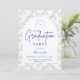 An elegant graduation celebration design featuring a delicate blue toile floral border inspired by classic European porcelain and vintage botanical prints. The intricate florals frame a clean arched center panel, creating a refined and timeless composition that highlights the graduate’s name and event details beautifully. Soft blue tones against a crisp ivory background give the design a sophisticated yet celebratory feel. Perfect for a stylish graduation gathering with a classic, romantic aesthetic.