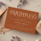 Postponing a big event like your wedding can be stressful, but you can still look stylish with this vintage and minimalistic change of plans template card. It says "Postponed" in stylish typography font at the top with a little heart. The background is terracotta.