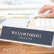 This classic name plate creates a professional look in the office. Its simple design blends traditional and modern typefaces for a sophisticated, minimalist aesthetic. Personalize the template with your name, and job title. This sleek design is perfect for many different professions, including Corporate & Executive Roles, Business Consultants, Entrepreneurs, Small Business Owners, Legal Professions, and more. Printed colors: blue-black and ivory white.