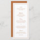 Classic style earth tone wedding menu in a terracotta / rust / orange color featuring a simple and minimal design with your monogram, names and wedding date at the top along with your menu surrounded by a double border. The fonts alternate between and elegant script, a traditional serif and minimalist sans serif fonts. This menu is great for a formal wedding.