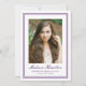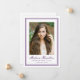 Honor your graduate’s milestone with this elegant purple photo graduation announcement, designed with a refined double border frame that adds a distinctive and sophisticated touch. The graduate’s portrait is centered within the clean, structured layout, drawing attention to their photo while maintaining a polished and timeless presentation. Their name is displayed below in graceful script, with their school and graduation year shown beneath in classic serif lettering for a formal academic finish. The back includes space for a personalized announcement message, allowing you to share their accomplishment and celebrate this meaningful achievement with family and friends. Ideal for high school and college graduates, this purple graduation announcement offers a memorable and stylish way to mark this special occasion.