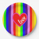 Classic Rainbow Stripes with Heart Colorful Paper Plates