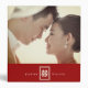 This design features a modern double happiness symbol in minimalist chinese writing within a simple classic rectangle frame on a plain background. A stylish and classy asian themed wedding design for a contemporary chinese wedding.
