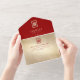 Classic Two Lined Red / Faux Gold Foil Rectangle Double Happiness On A Solid Red Color / Faux Gold Foil Image Background, Chinese Wedding Invite + RSVP Card, All-in-One Invitation.