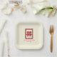 Classic Minimalist Red Rectangle Double Happiness On An Ivory / Beige / Cream Background, Modern Chinese Wedding Reception / Lunch / Dinner Party, Paper Plates.