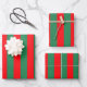 Classic Red and Green Christmas Stripes Wrapping Paper Sheets