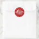 This festive red and white round Christmas sticker exudes classic holiday charm and is perfect for adding a personal touch to your holiday greetings and gifts. The center of the sticker features the timeless message "Merry Christmas" in elegant white script, capturing the spirit of the season. Personalize by adding your name or family name.