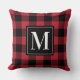 Classic Red Black Buffalo Plaid Monogram Christmas Throw Pillow