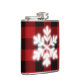Classic red black plaid pattern cute snowflake flask