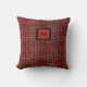 Classic Red Black Plaid Tartan Pattern Monogram Throw Pillow