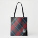 Classic Red, Blue and Black Plaid Monogram Tote Bag