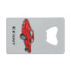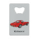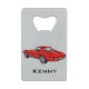 Classic Red Corvette Design Bottle Opener with customizable text on front and back, and background color.