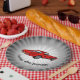 Classic Red Corvette Design Paper Party Plate with customizable text.