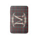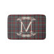 This elegant contemporary bath mat features your family monogram and a stylish plaid pattern in shades of green, dark blue, and red, evoking a classy and nostalgic English holiday feel. It is perfect for decorating your bathroom or shower. This design complements a classic colonial home, a country cottage, a log cabin, or a vacation home by a lake or river.