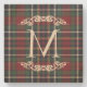 This elegant and contemporary beverage coaster features your family monogram and showcases a classic plaid pattern in shades of green, dark blue, and red. This design captures a classy and nostalgic English holiday ambiance. Making it ideal for decorating a classic colonial-style home, as well as a country cottage, log cabin, or vacation home by a lake or river.