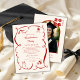 Celebrate a proud academic achievement with this elegant red graduation party invitation with photo, designed in a timeless vintage style. Featuring a refined cream background with bold red decorative accents, graduation icons, and a beautifully framed photo on the back, this invitation blends classic charm with modern personalization.