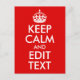 Create your own "KEEP CALM AND CARRY ON" typography style postcard with a classic red background and white text. If you transfer the text design to another product, set a background color such as this red color code DDOOOO.