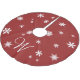 This tree skirt is accented with your family monogram on a classic red background covered in snowflakes.