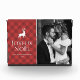 Classic Red Plaid with Deer Joyeux Noël Holiday Photo Block | Display your favorite photo this holidays with this customizable photo block. This will also be perfect as a holiday gift. It features red plaid pattern, deer illustration and classic typography. Personalize this elegant holiday card by adding your own details and photo.