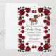 Embrace the timeless romance of the Kentucky Derby with this exquisite invitation that feels like a blooming garden masterpiece. Featuring a pristine white background, the design is framed by a lush, cascading wreath of deep velvety red roses and rich green foliage, creating a natural, organic border that exudes Southern charm. At the heart of the arrangement stands a majestic chestnut horse in mid-gallop, rendered with realistic detail and grace.