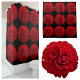 A dramatic and elegant shower curtain of classic red roses on a black background. The photographic images of roses are original floral botanical photography by JLW_Photography.
