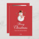 A festive holiday postcard with a charming snowman wearing a brown hat and striped scarf on a rich red background. Personalize with your family name and year for a warm and timeless Christmas greeting.