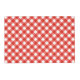 These laminated paper placemats feature a classic red and white gingham pattern.