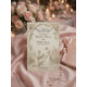 Announce your formal estate union with a romantic neo-classical design featuring a proposal scene and soft botanical accents in a timeless monochrome palette.This design features a highly detailed digital illustration simulating a 3D bas-relief stone carving. The central image depicts a romantic engagement scene where a gentleman kneels to propose to a lady in a flowing gown, set within a classical rotunda temple architecture. The "carved" stone elements are rendered in shades of beige, cream, and warm grey, contrasted by flat-printed pastel pink and peach roses with muted sage green leaves climbing the arched frame. The typography combines an elegant, ornate black calligraphy script for names with a traditional serif font for the details.This is a flat printed image with a Faux Stone Embossed effect, not actual raised material or textured paper.