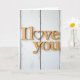 This greeting card shows the message “I ❤️ YOU” arranged in two lines, with the “I” and the heart on top and “YOU” below. The letters look like natural wood cutouts in a warm honey-brown color, and they sit slightly raised so you can see gentle shadows underneath. The heart symbol takes the place of the word “love,” making the message feel simple and direct ❤️. Behind the words is a background of vertical wooden planks painted an aged, worn white, with small chips that reveal the wood texture underneath. The text looks like sturdy carved letter shapes rather than ink, and it’s placed right in the center so it’s the first thing you notice. The soft lighting and cozy wood tones make it feel calm and close, like a quiet “I love you” that doesn’t need a lot of extra words. It’s a meaningful card to give to a partner or someone you care about because it feels honest and steady, not rushed. Hope it helps you share your Valentine’s Day sentiments 🥰.