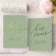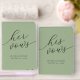 Beautiful matching his and hers foil wedding vow books in sage green and gold foil with "her vows" and "his vows" in modern script font. Personalize with your names and wedding date.