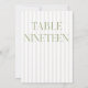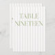 This elegant table number features a soft beige striped background with refined sage green serif typography and subtle script accents. Designed for garden weddings, refined receptions, and timeless outdoor celebrations.